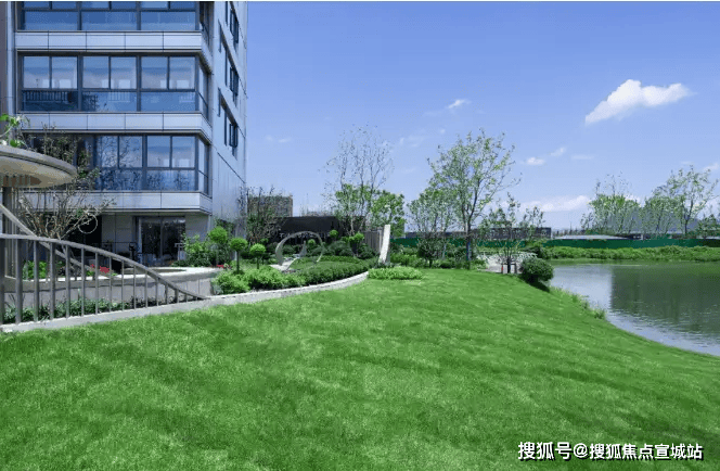 内部配套:L 型双面环水近百米湖岸线、滨水休闲步道、一轴九园中式园林、儿童游乐区、成人健身区、社区泛会所,人车分流。