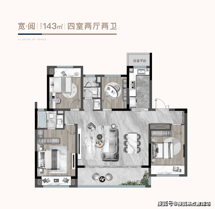 当人生攀登至理想高度,生活的宽度也需要契合匹配。熙和樾庭匠筑建筑面积约166㎡四室三厅三卫,以宽境敬献人生高度,犒赏人生大成。