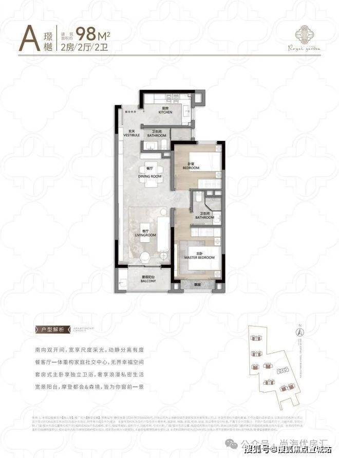 建面约94-100㎡的两房A户型是千万总价入主静安内环的理想之选,最高超79%的得房率,室内几乎没有走廊等空间浪费;动静分离,主卧套房设计,配独立卫浴间,居住舒适;次卧功能定位多样,可做多功能儿童房、书房、工作室、电竞房等等;阳台尺度宽适,增加实用空间的同时,还可为宠物设计一处梦想乐园。