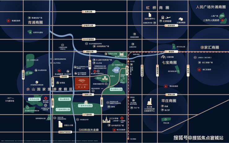 🚇【交通配套】高速:沪渝高速、沪昆高速、上海绕城高速;地铁:9号线(佘山站);机场:虹桥枢纽;其他:有轨电车T5(规划)、佘山汽车站