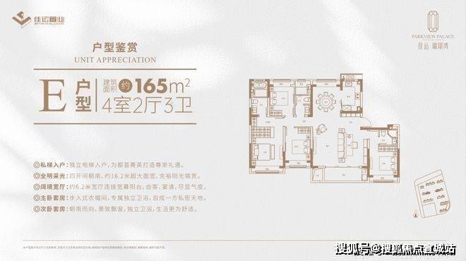 非常值得一提的是,项目最大规划约165㎡奢境户型,做了约3.1米层高、约6.2米宽厅设计、独立电梯入户(其它户型1梯2户),南向豪华主卧套房......
