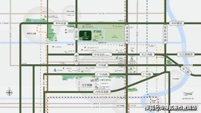 2. 自驾:周边有南北高架、外环高速等主干道环绕,沿富长路、联谊路可直达售楼处;非高峰时段15分钟可达大宁商圈,25分钟至人民广场,30分钟抵达虹桥枢纽,售楼处提供免费停车服务,预约成功后可获取专属停车指引。