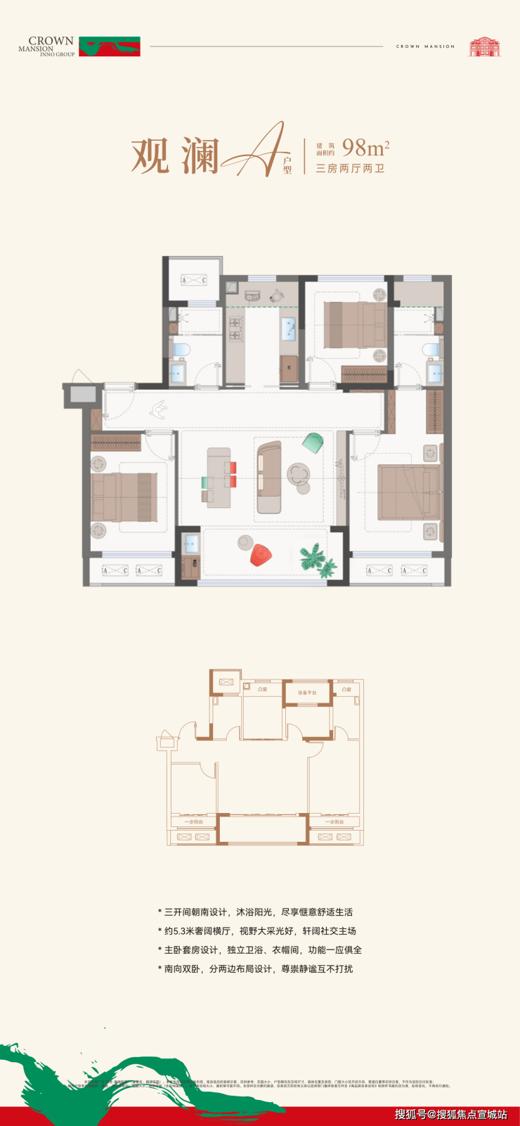 98㎡户型实现南向三开间+5.3米横厅,实际体验对标市面120㎡产品