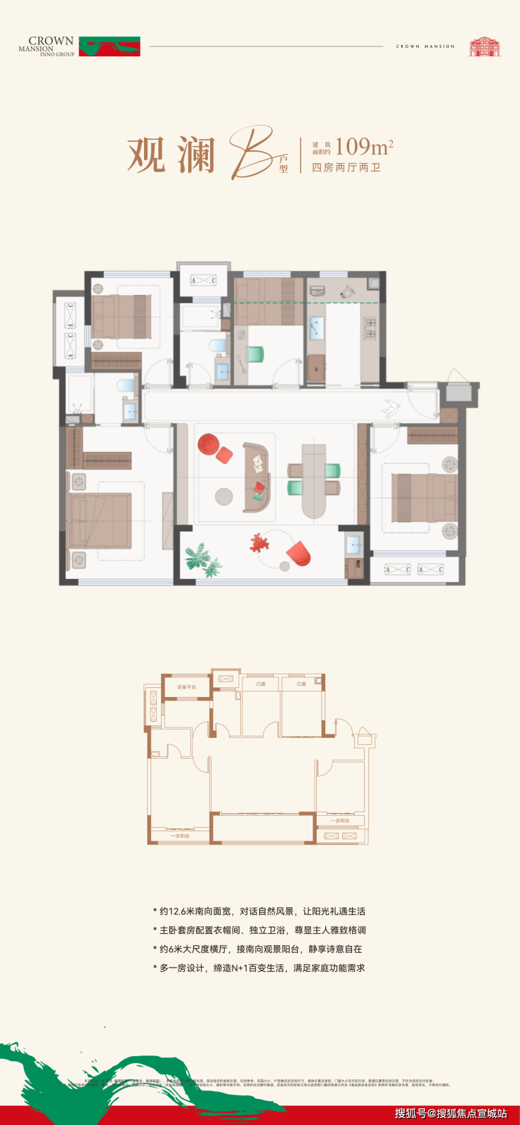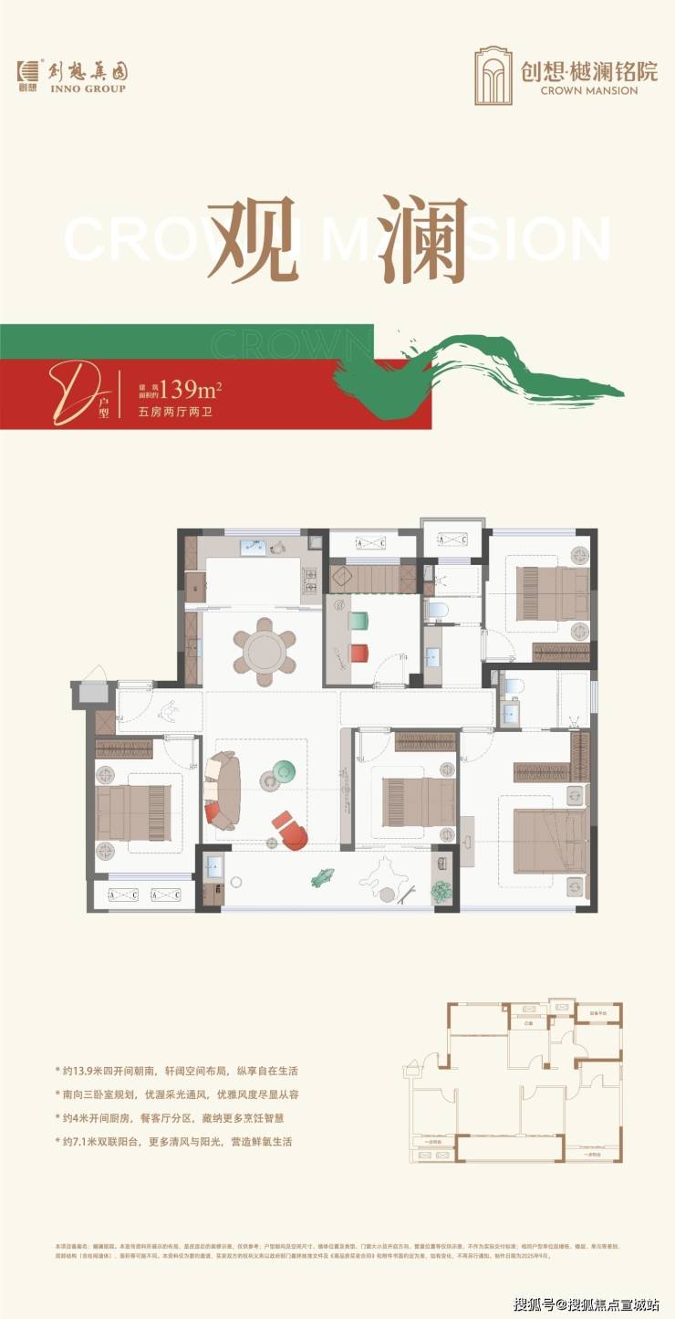 136㎡户型南向面宽达13.9米,适合三代同堂