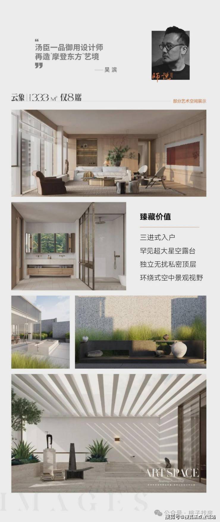 300方孤品艺术大平层,典藏67席,四种产品四种装修