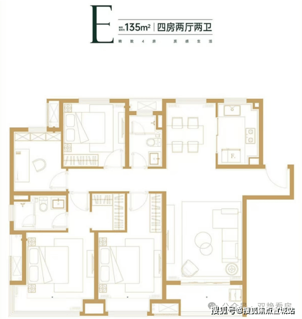 建面约135㎡四房两厅两卫
