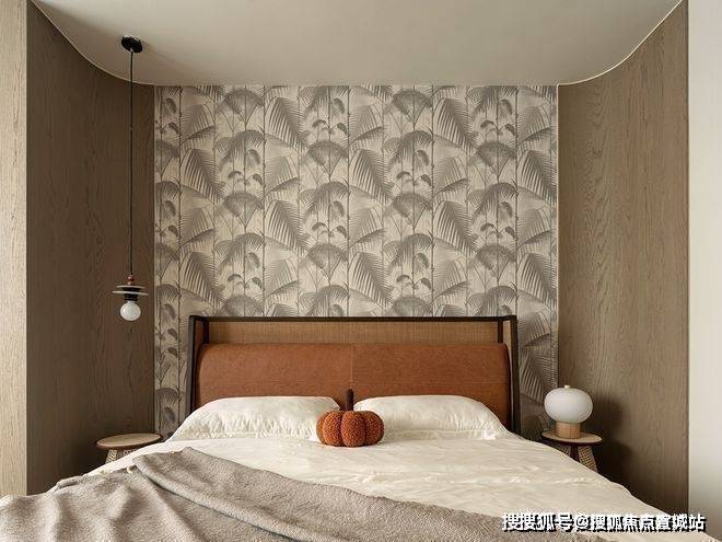 设计师为床体打造了“凹槽”,展现了家的安稳性,同时赋予了墙面细腻的叶片,来点缀空间的自然之意,让生活的意境更具浪漫的成分。