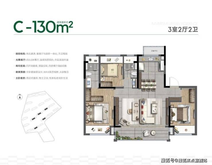 【大横厅设计】采用大横厅设计,全明户型,南北通透,打造真正宽阔人居;