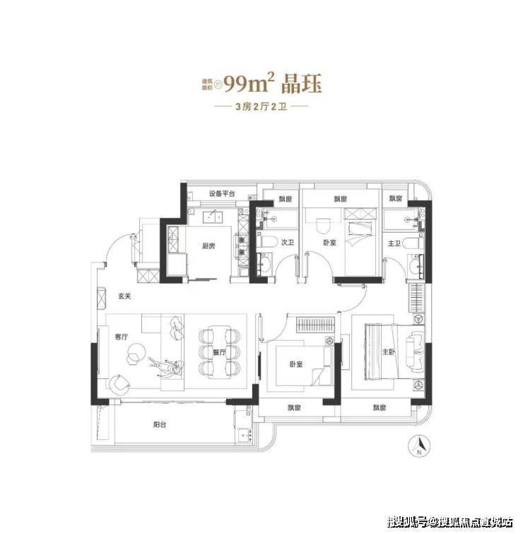 建面约99㎡三房户型图▼