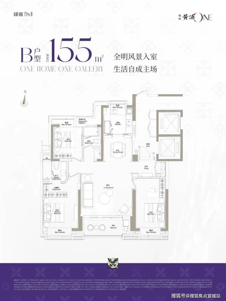 户型设计:155 平方米三房三开间朝南,配备 6 米景观阳台,主卧套房达 25 平方米。193 平方米四房实现 270° 环幕视野,主卧与客厅双面采光,层高 3.15 米,两梯两户配置。