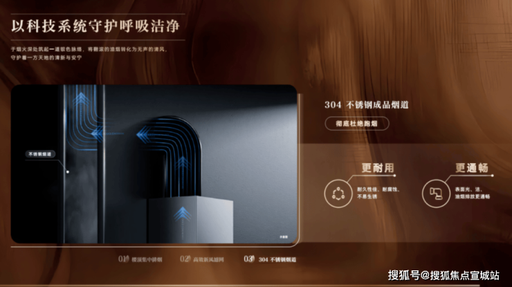 ◎ 衡洁:清鲜如一的全域呼吸。摒弃传统水泥烟道,升级 304 不锈钢烟道系统,从结构上消除回烟与异味困扰;搭配多重滤网新风系统,PM2.5 过滤效率超 98%,让每一次呼吸都清新畅然。