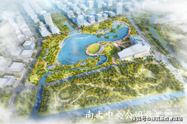 ◐南大智慧城计划将南大中央公园打造成一个地上地下空间联动、集“科创、休闲、娱乐”三位一体的高度智能化主题探索型城市乐园。