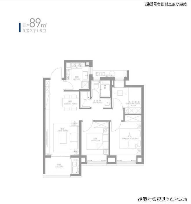 约89㎡三房,1.5卫设计为临港首创,在总价可控的基础上兼具实用性。
