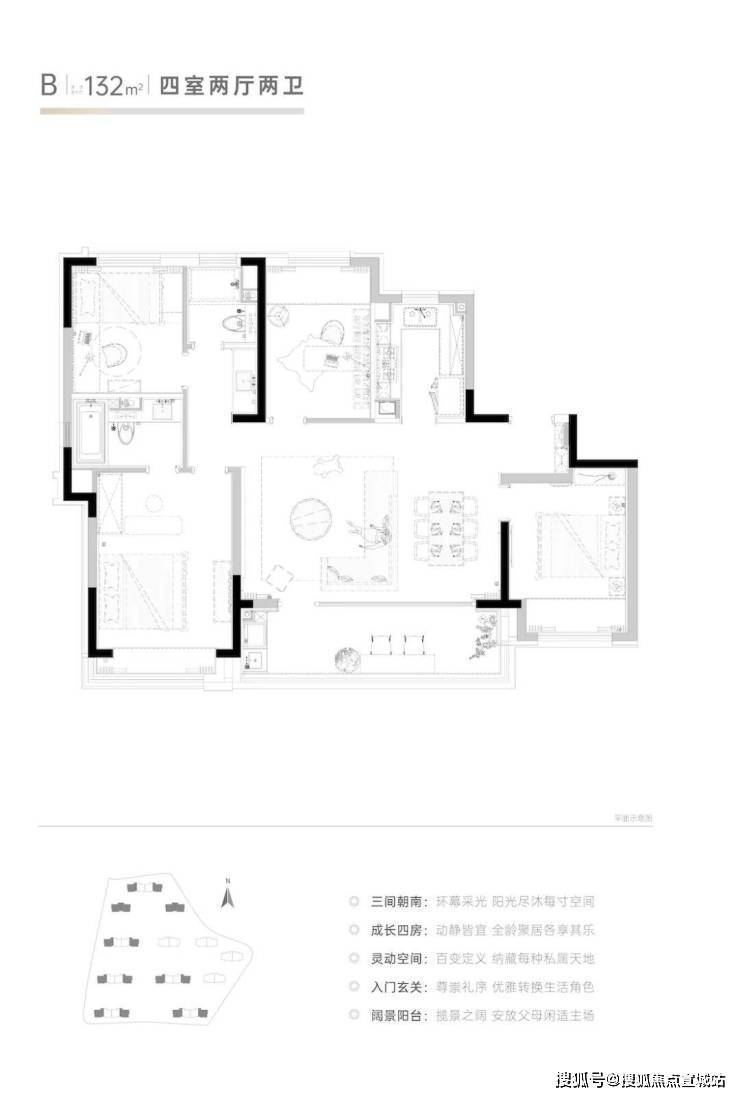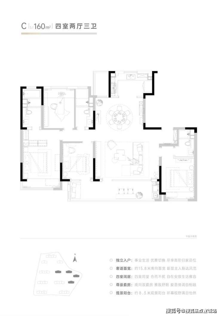 朗诗美田锦华轩,秉承朗诗地产绿色科技的DNA,致力于为业主打造一个恒温、恒湿、恒氧、静音、适光的理想居住环境。在这里,我们努力保持室内温度在1-26℃之间,4小时不间断地提供新鲜空气,确保室内相对湿度维持在30%-70%的最佳舒适区,采用360度的隔音降噪技术,配备可自由调节的遮阳卷帘系统,共同营造出一个柔和的光线环境此外,超过80%的节能效率和全天候的生活热水服务,更是将科技与舒适完美融合。