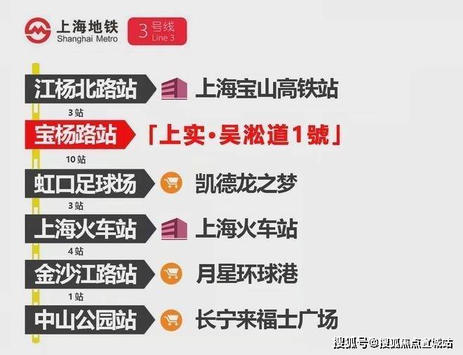另外,沿地铁3号线宝杨路站出发,可以畅联凯德龙之梦、月星环球港、长宁来福士等多个超级商业体。