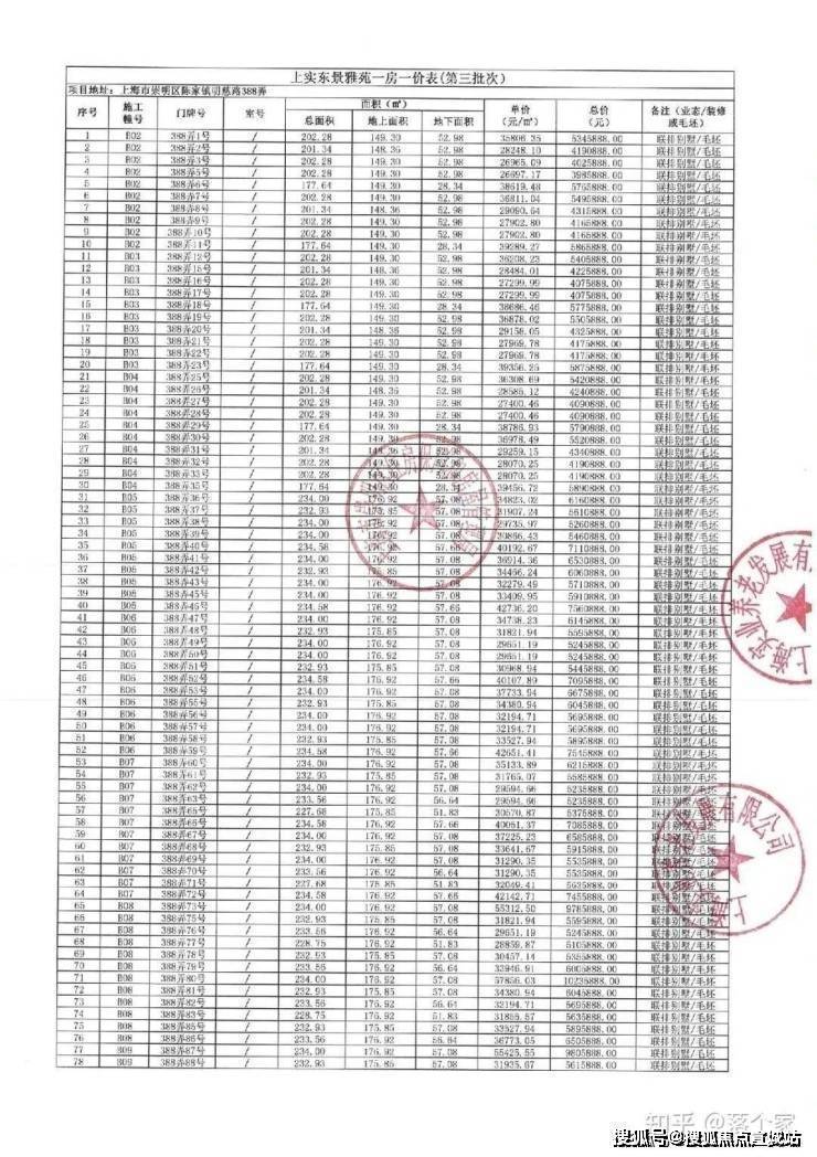 一房一价表发布