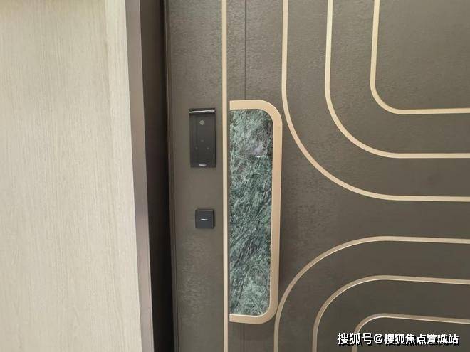 外观上,外部门把手金属镶边搭配绿色奢石,门内部的把手上还镶嵌了施华洛世奇水晶,算是一个小小的惊喜,开发商在打造装标上注重功能性的同时也不忘美观性。