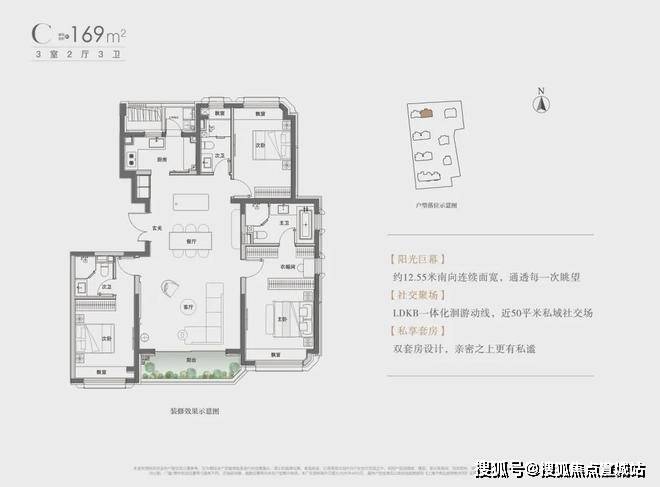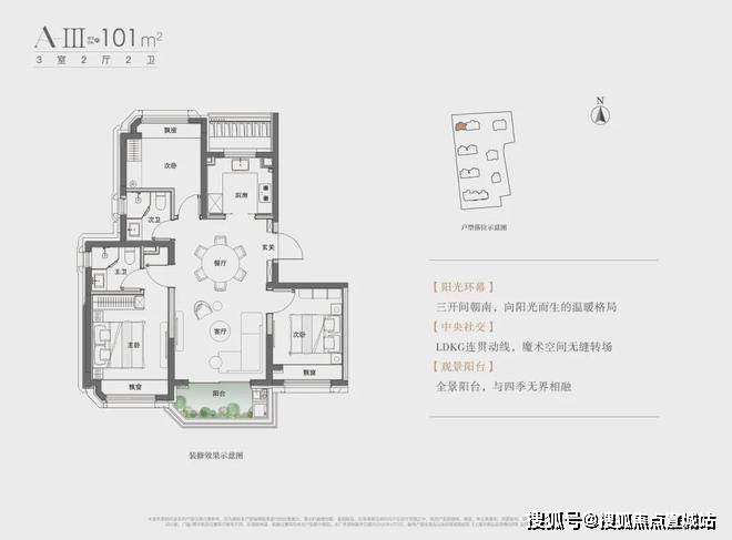 目前开放的是建面约101㎡3房和约169㎡3房两个样板间,直接来看101㎡现场实拍。