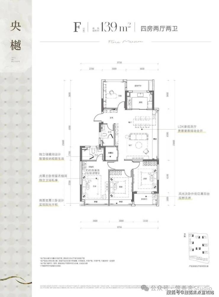 建筑面积约139平米四室两厅双卫户型,以其南向三卧室的宽阔布局、双飘窗与封闭阳台的独特设计脱颖而出。该户型占据小区景观资源核心位置,采用南北通透的整体设计,通风采光极佳。