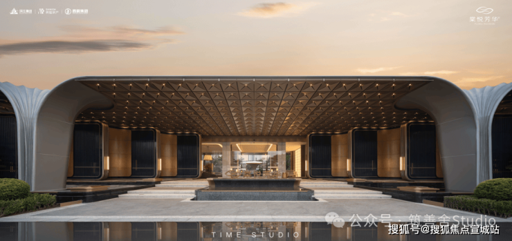 大门还是不错的,延续着卷大门的风格,一个刚需盘能有这样的大门已然相当不错了。萃取东方礼制精髓,沿东西向主轴设置多重归家院落,形成主入口至迎宾水院及度假水池为一体的礼序归家轴。层层递进的空间,在步移景异中,营造出多重归家仪式。