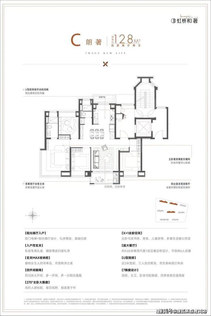 过去很长一段时间,由于土地端7090政策限制,新房产品绝大部分以百平米左右刚需产品为主,而保利虹桥和著此次将推出建面约128㎡稀缺舒适四房,本身就是一次难得的改善机遇,更何况该户型设计非常亮眼,四开间朝南设计,尽可能将更多阳光引入室内,主卧270度飘窗+南北通透大套房设计,同级别户型中十分罕见,充分满足舒适度和身份感。