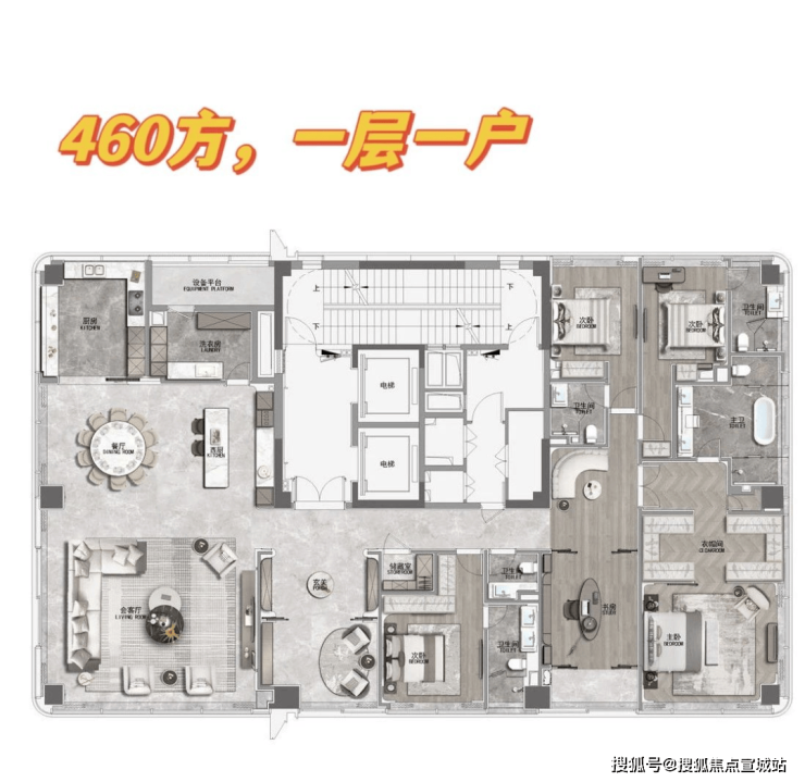 2#3#:460方,5房3厅5卫,2梯1户,一层一户,总高22层,4m层高