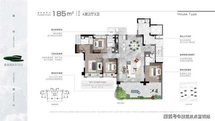 建面约220㎡的「典藏版墅居」堪称空中墅居的终极形态,独门独户+双重归家动线+前庭后院+无界景观+墅级挑高+动静有序+星级主卧。