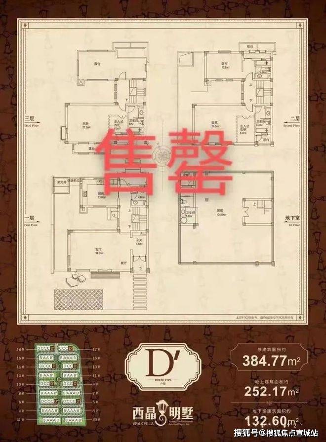 D户型:总面积379.08㎡,地上245.53㎡,地下133.55㎡(已售罄)。