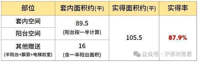 该户型大量的飘窗+双阳台设计,保证了每个功能间的通风采光,也提升了户型的实得率。经过专业建筑师测算,假设阳台全部封闭的情况下,项目建面约120㎡户型实得面积约105.5㎡,实得率约88%。(该实得率数据根据实得面积预估计算所得,仅供参考,不作为置业依据。最终得房率以购房合同为准)