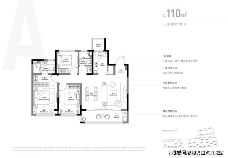 户型:110㎡(3-2-2),130㎡(3-2-2),143㎡(4-2-2)