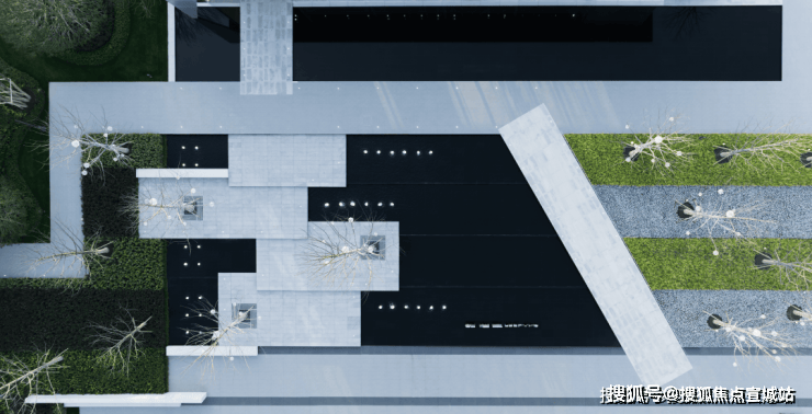 浓荫包裹的主入口核心轴线,以极具仪式感的迎宾楼为起点,起笔层层递进的绿意与水景交织图景,为居者打造可以快速切换归家情绪的起点。