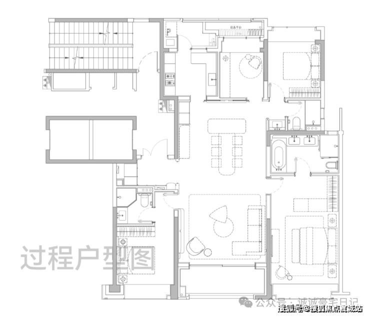 主卧配置步入式衣帽空间、双台盆+大浴缸主卫。