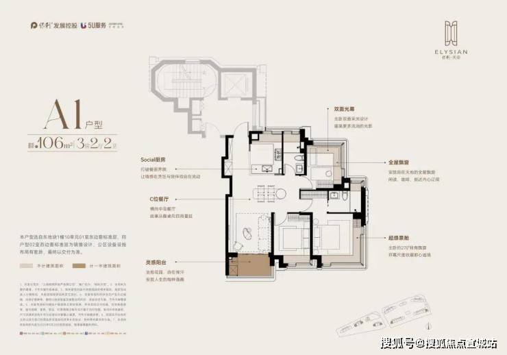 东1#边套:全屋飘窗+约270°的转角飘窗, 实际空间感十分优秀!
