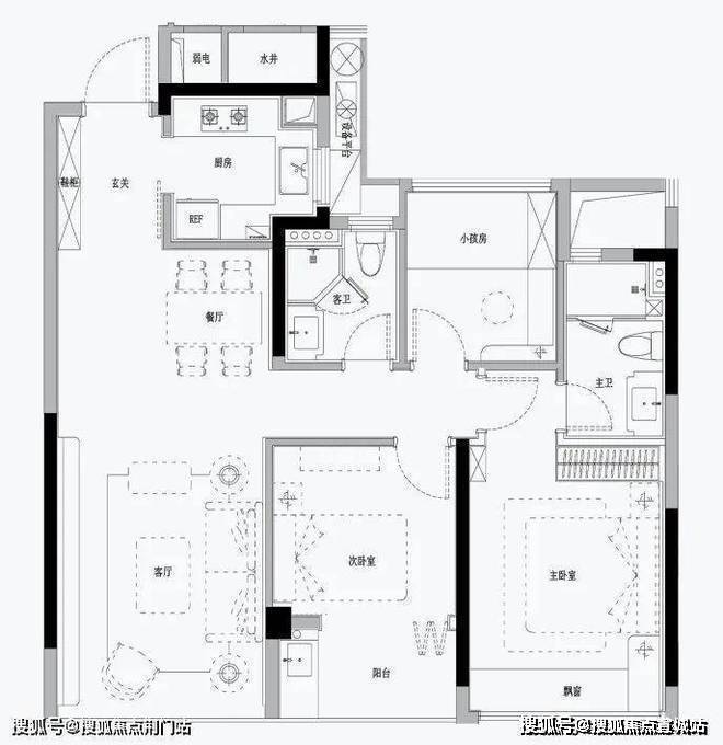 (建面约)95㎡的起步三房,就做到了南向三开间,总面宽约9.8米,收纳空间也可以从玄关一路延伸至电视墙,充足的收纳空间,让买买买不再有后顾之忧。