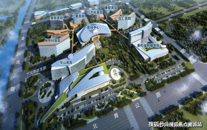 距离项目约5公里的新虹桥国际医学中心,是虹桥打造的面向世界的权威医疗窗口,整个园区占地100公顷,一期包括华山医院(已开放)、肿瘤医院(在建)、百汇医院(在建)等共8家综合性专科医院,还有二期规划中的协华脑科医院、圣康达医院、绿叶利兰医院等!