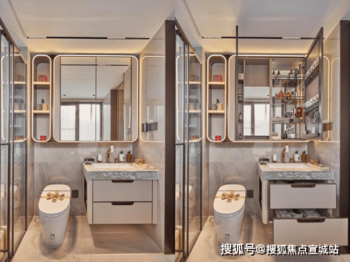 保利天奕特别关注到女性的生活需求,专门在卫生间配备了科勒美颜龙头、美妆镜柜、美妆冰箱,采用“顶+面双补光照明”,能把“女本位”需求做到如此细致,目前没有几个项目能做到!