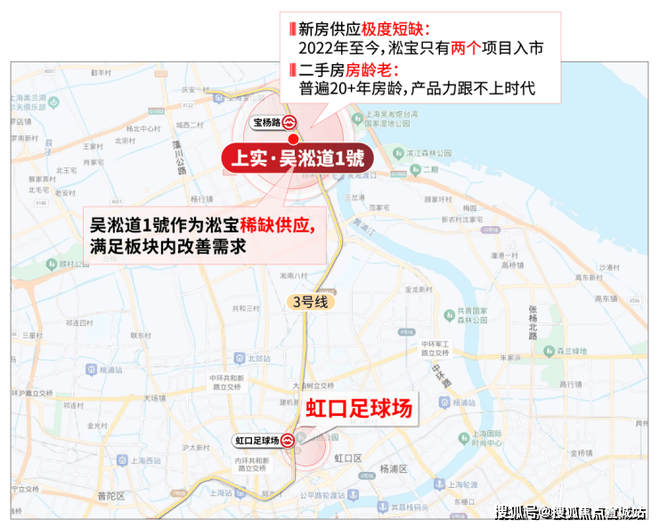 作为3号线地铁房,项目直线距离宝杨路站约500米,可步行进站。