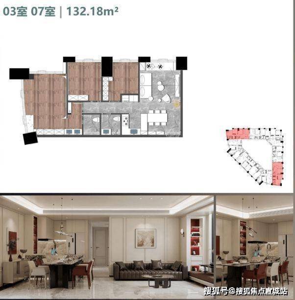 户型设计合理:户型面积为建面约 97-180㎡的 1-4 房,能满足不同家庭的居住需求。户型方正通透,部分户型配备景观阳台,空间利用率高。例如,97㎡的两房采用三开间朝南 + LDK 一体化设计,132㎡的三房拥有 9.2 米南向面宽和 1.8 米深阳台。