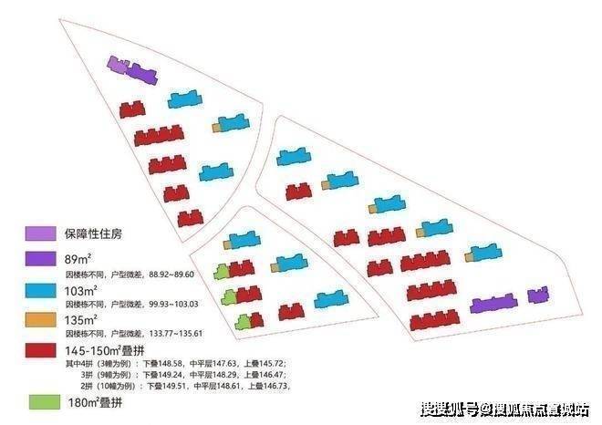高层户型:有 89㎡三房两厅一卫、103㎡三房两厅两卫、135㎡四房两厅两卫等户型。