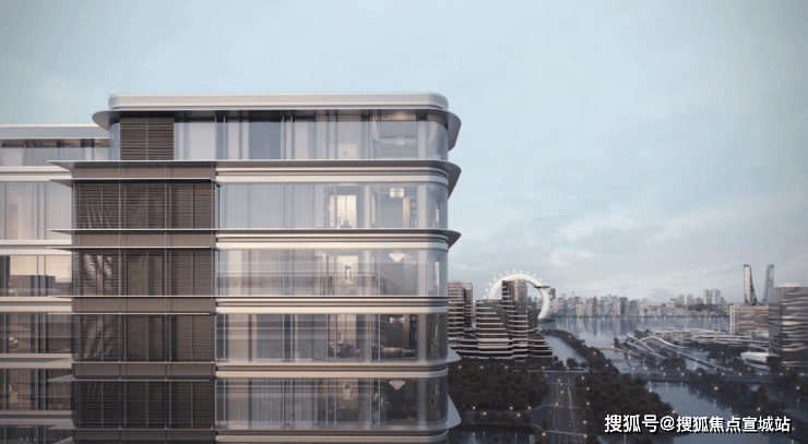 “游艇”造型辅以流动的水波立面舒展的横向线条,圆润的转角处理彰显钱江新城和江河汇的华贵气质让建筑,仿佛原本就应该出现在此。