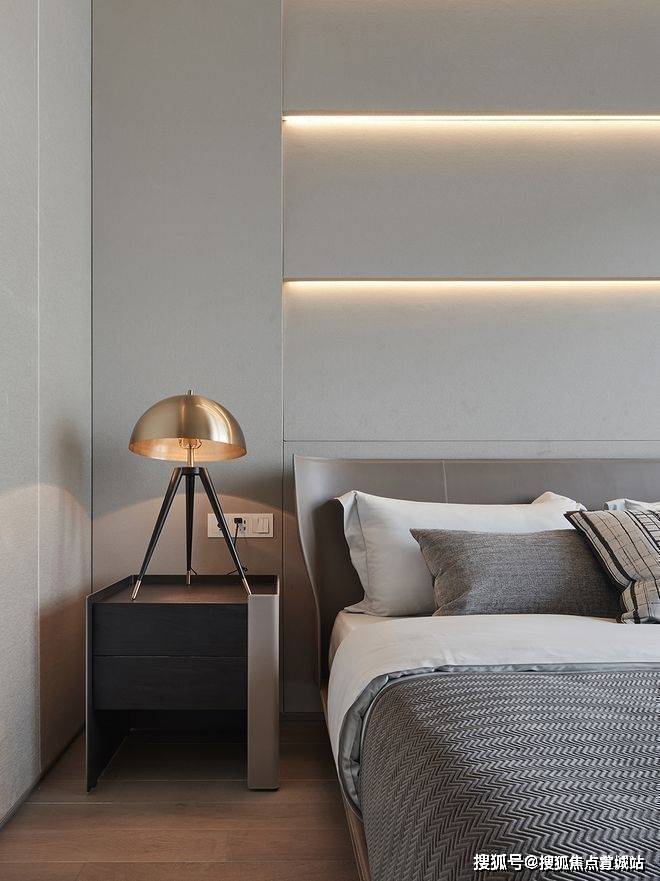 墙体以结构立面斜角造型向中间递进,增强了主卧的视觉。