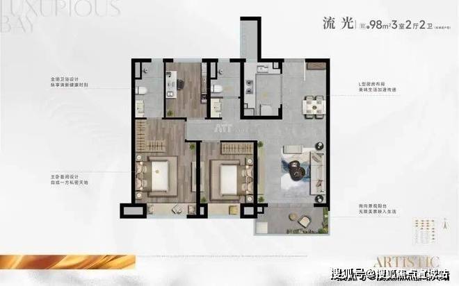 以7.6m大横厅,深U型厨房以及奢阔休闲阳台,彰显高阶气度与格局,独立入户的设计互不打扰,静享私密,南向大横厅,让阳光、风景与生活常伴。再次以奢阔美学艺术生活,敬献金山大人物。