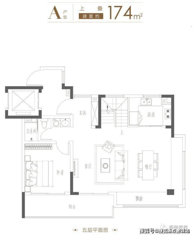 上叠带露台及阁楼,北露台约10㎡,南露台约17㎡,阁楼约40㎡