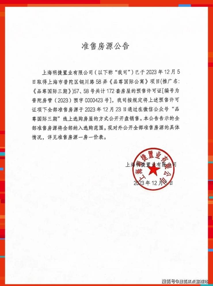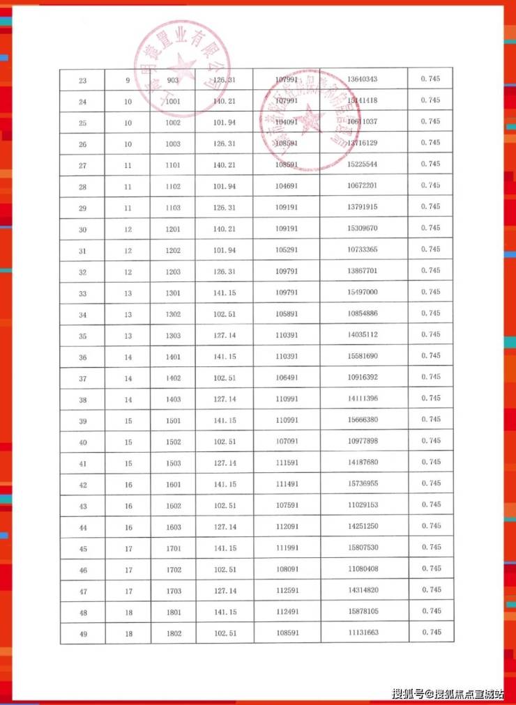准售房源一房一价表