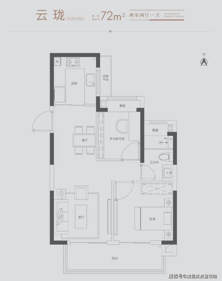 约72平2房户型,拥有宽幕双开阳台的“跑道式”设计,可享受空中花园般的瞰景视野,还可邀三两好友欢聚、对弈品茶,甚至打造一个“私人阳光健身房”,畅享运动快感,即使宅家,生活也能精彩无限!