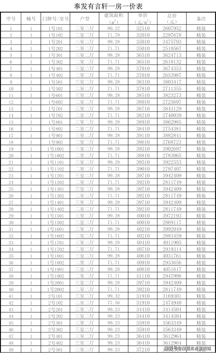 项目一房一价表如下:(实际以官方公示文件为准)