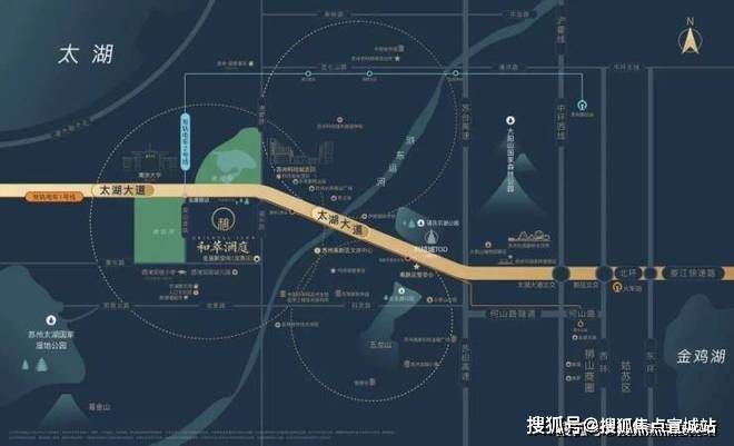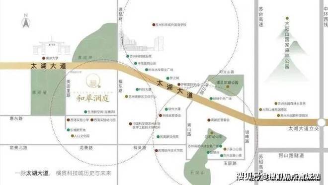 和萃澜庭位于苏州高新区科技城核心位置,向东1km为科技城文体中心、2km为科技城核心区TOD项目,向西1.5km为南大苏州校区