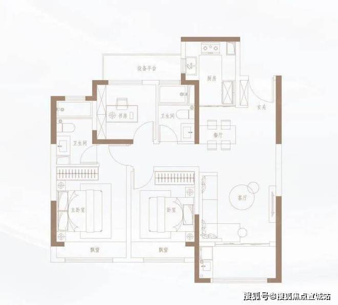 103㎡/113㎡户型较为传统,格局基本相同,3室2厅2卫,只是在尺度上有所区别。