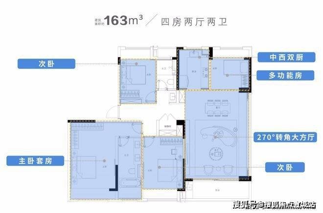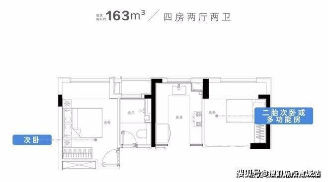 其二,建面约143、163㎡两大户型,起步改善大四房,满屏的领先产品力。