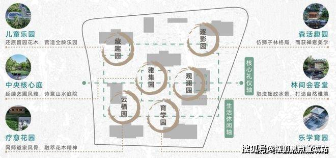 镜头拉近,园林并未停留于表面,而是将很多人文雅集融入,内部设置山水雅集庭院、林间会客堂、森活趣园、国学课堂等场景,雅趣感十足。